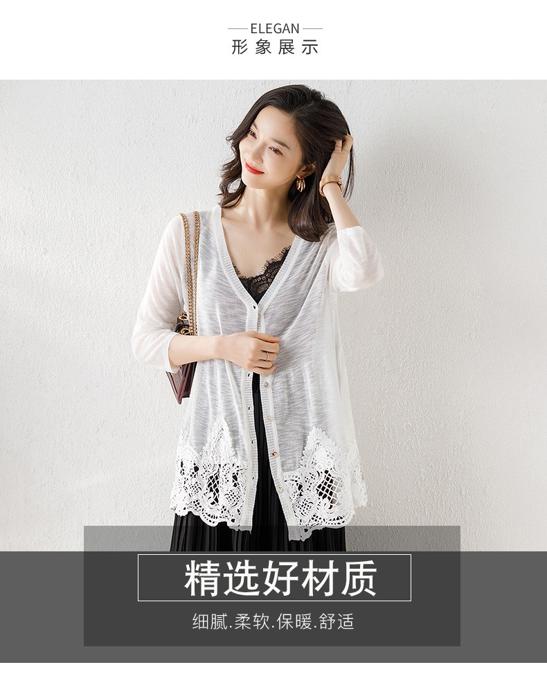 じんましん氷糸nitrocガルル。ディガンの薄手ゆかし2020夏新着品7分袖の外に日烧止めの服を着ています。